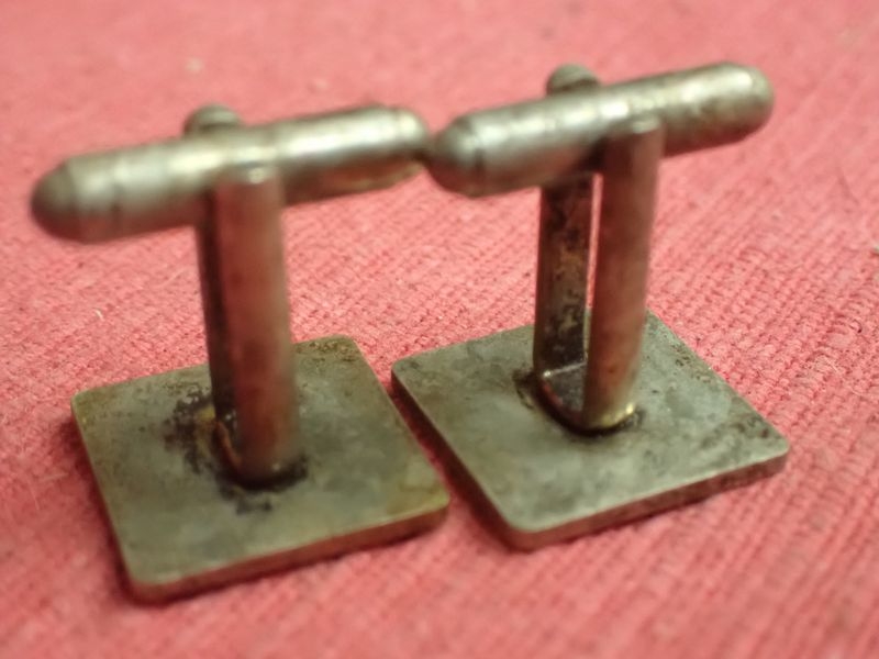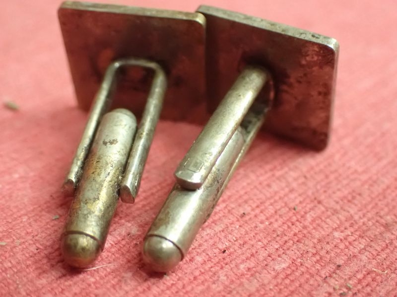 Rare private purchase cufflinks. Nickel-silver with black enamel. Facing 15 x 15 mm. Light untouched patina.
