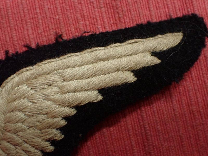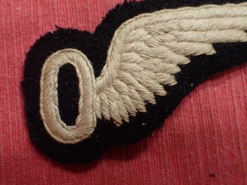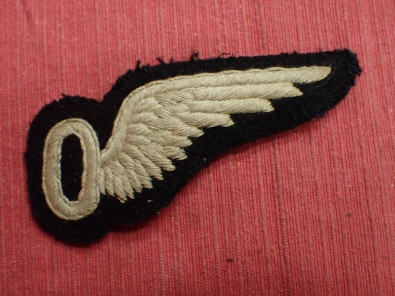 Early cloth RFC observer wing with the elongated "O". 93 mm across. slight edge wear.
