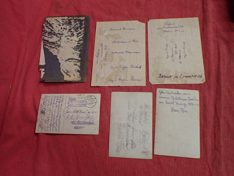 Three larger images, album removed. 168 mm across. Along with three postcard-sized images