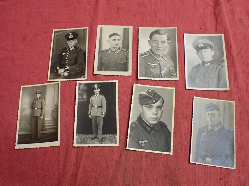Eight WW2 German soldier photographsPostcard size images. Some with dates and details to the backs