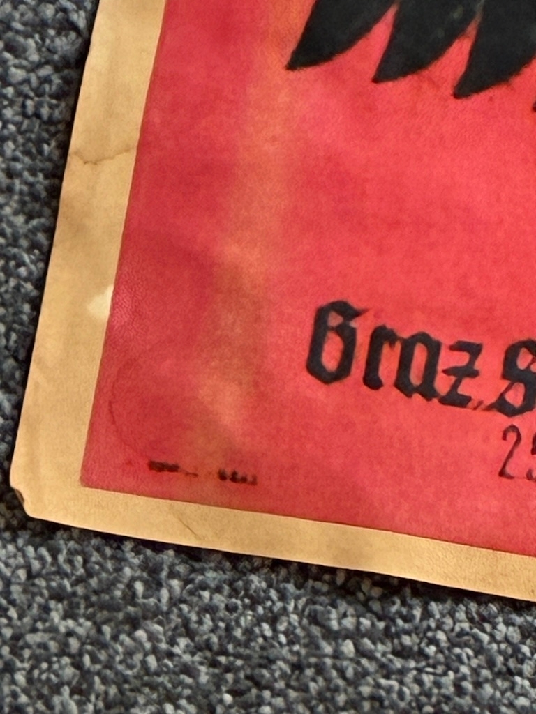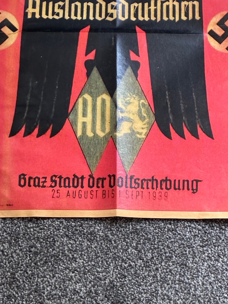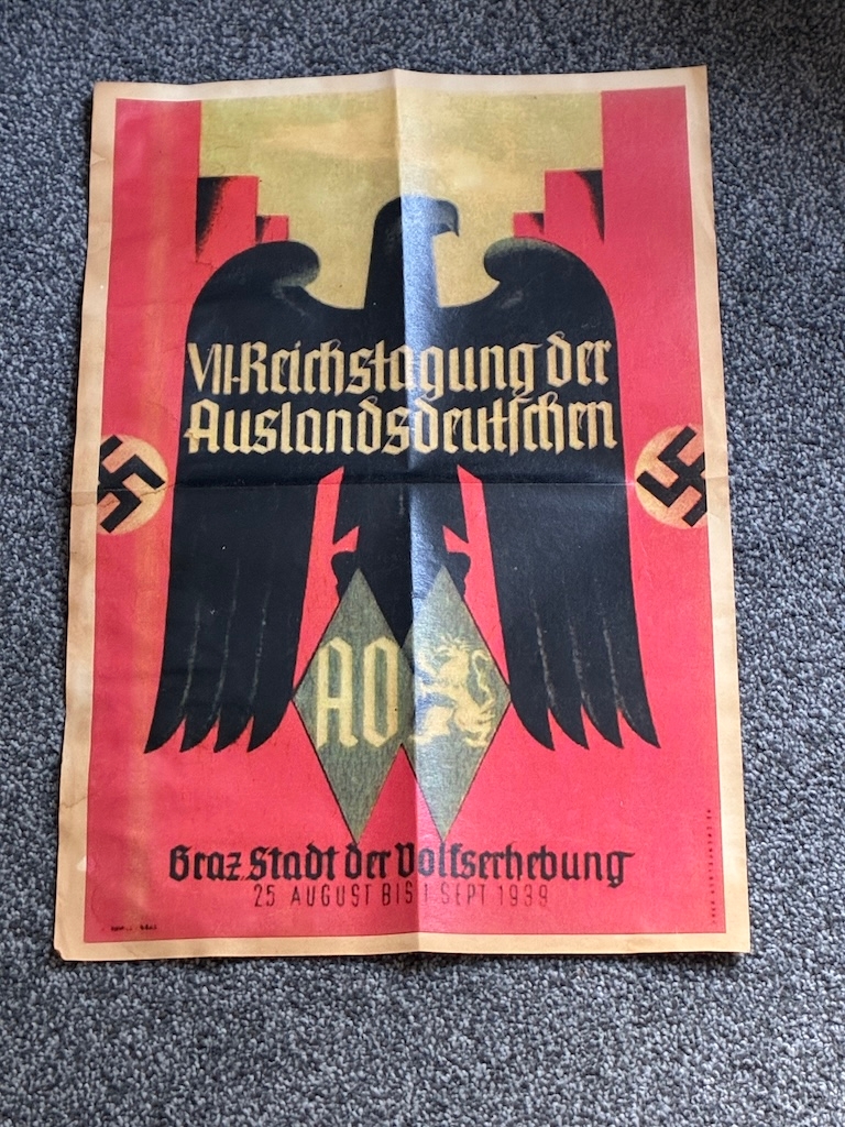 WW2 German / Austrian Propaganda Poster Measures 44.5 x 32 cm , has been folded and with some water damage as shown.