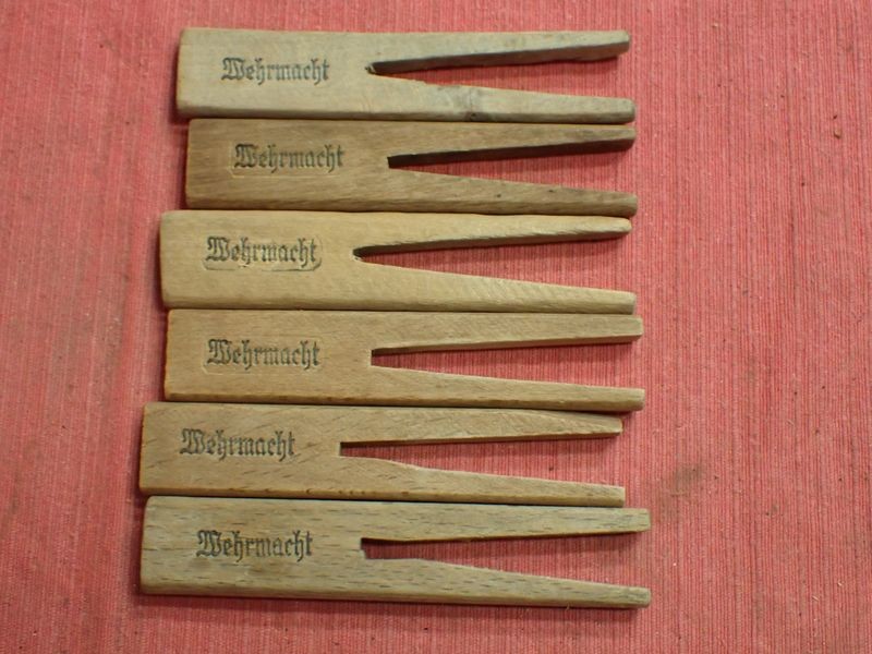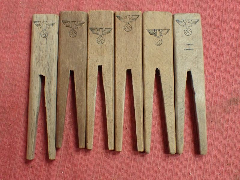 WW2 German, six army marked clothing pegsWooden pegs with rounded edges. Around 110 mm
