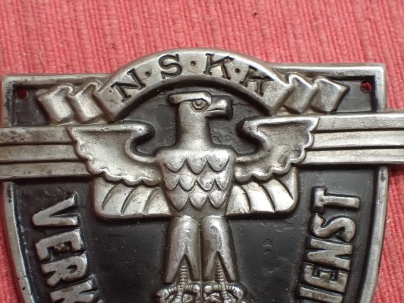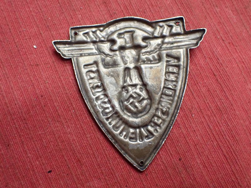 WW2 German N.S.F.K. small plaqueDie-stamped aluminium plaque. Black paint to the relief. 73 mm tall.
