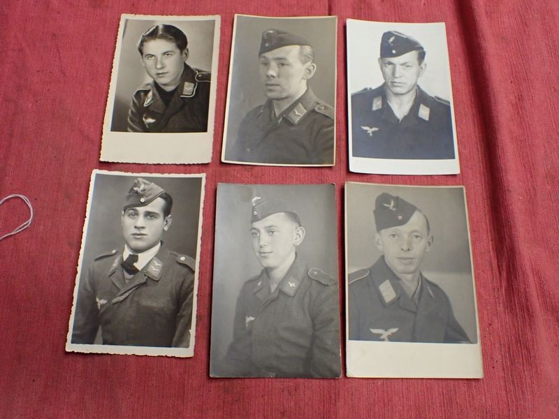 Six WW2 Luftwaffe enlisted men photographsPostcard-size images