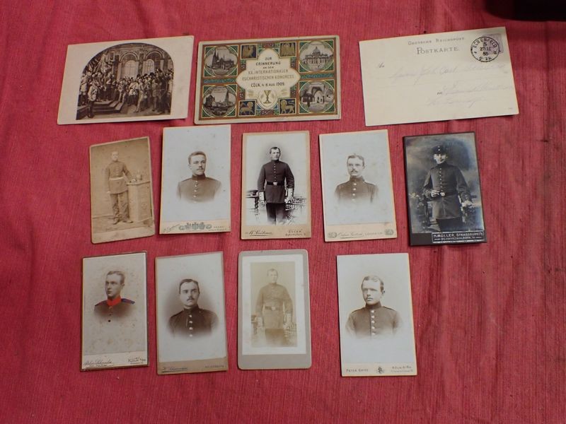 WW1 an earlier German postcards and cabinet photosThree pre-WW1 postcards, and nine cabinet photos