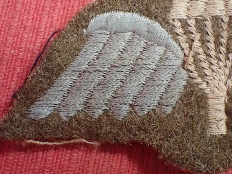 Woollen sleeve patch with stitched detail, 85 mm across. Traces of paper to the back from having been in an album.