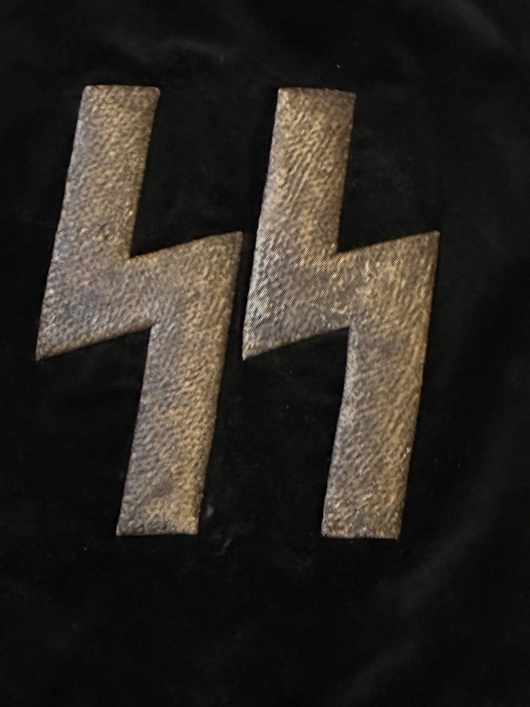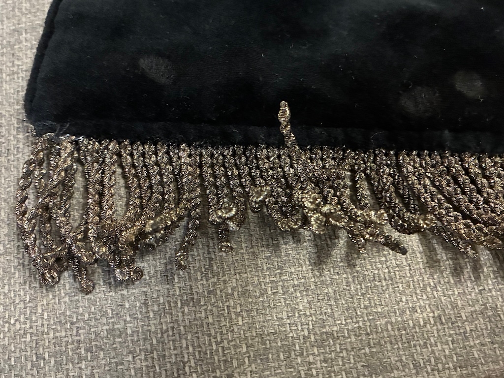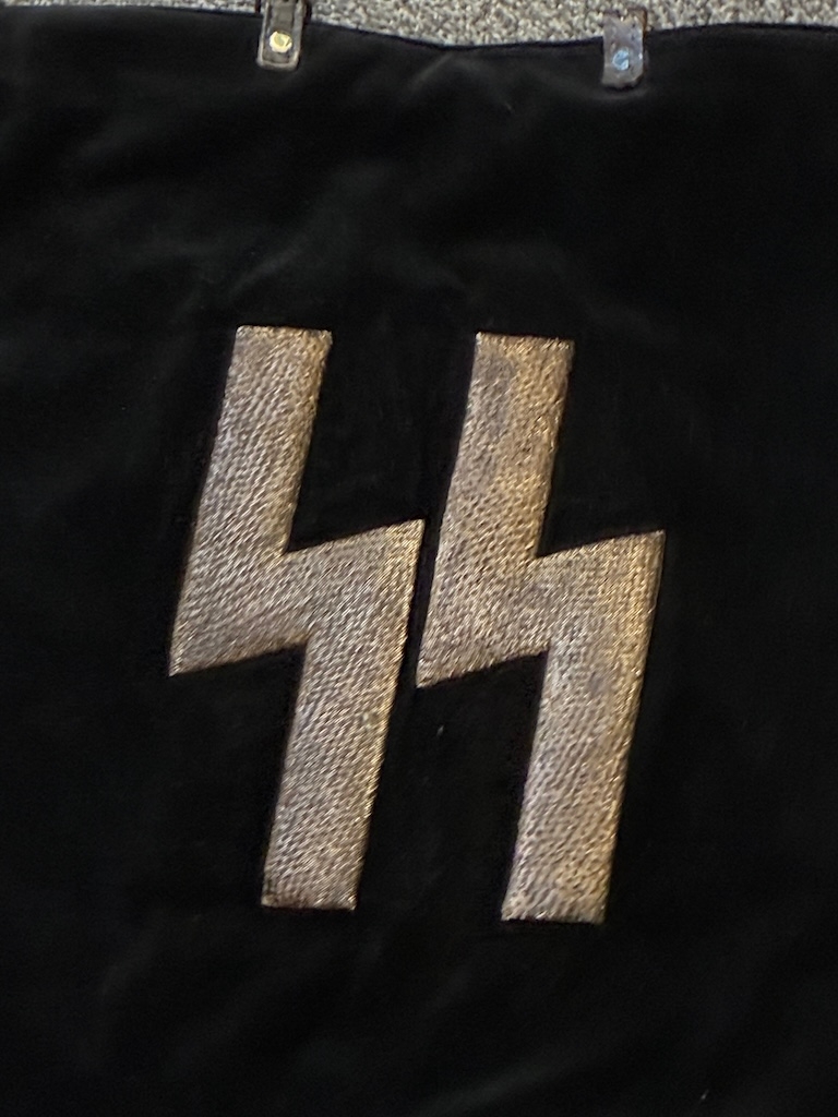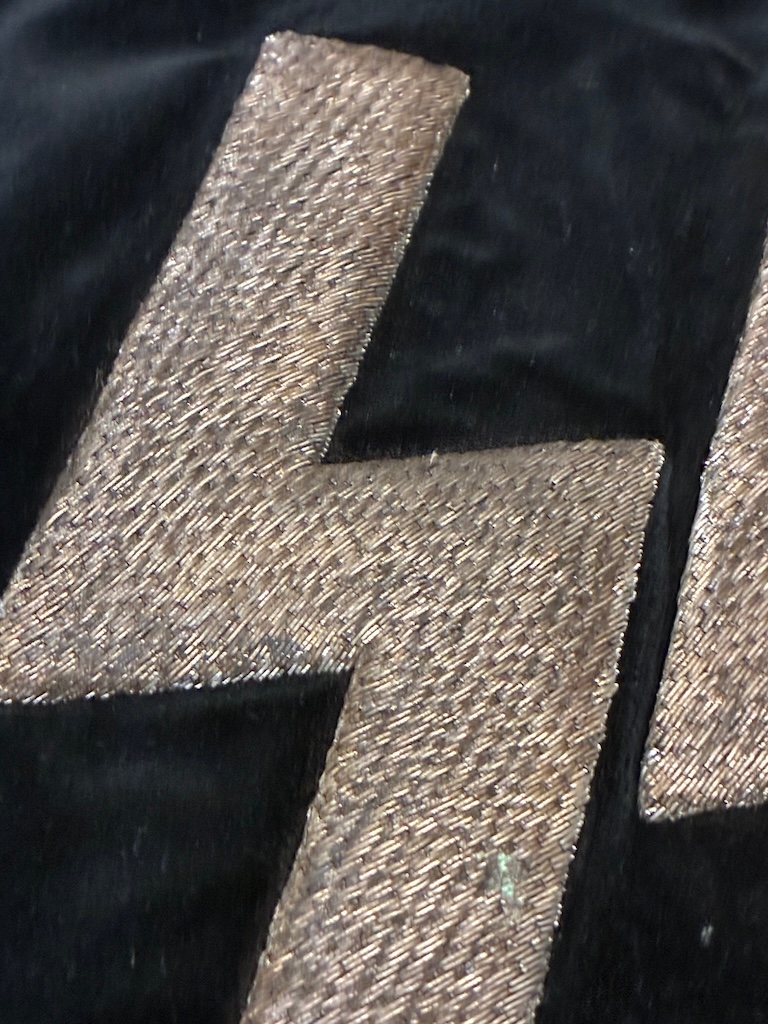 An early Kampfzeit (years of struggle pre 1933) SS Trumpet Banner , velvet material with metallic runes to both sides and a metallic silver tassle. Measures 45 x 45 cm excluding the tassles. Excellent condition.