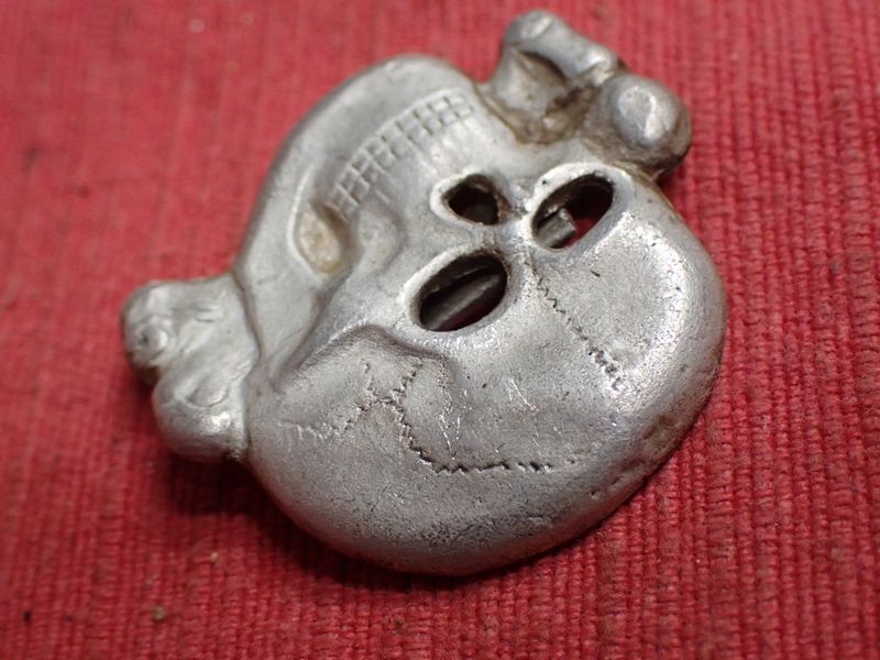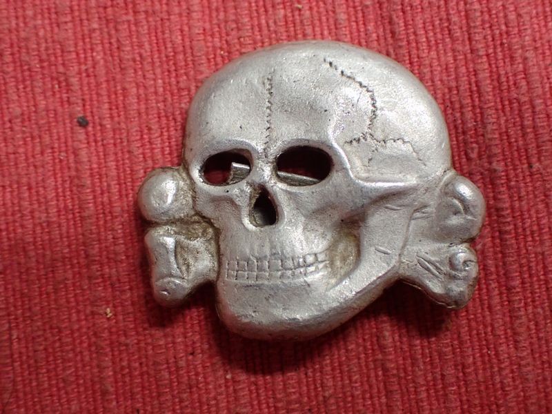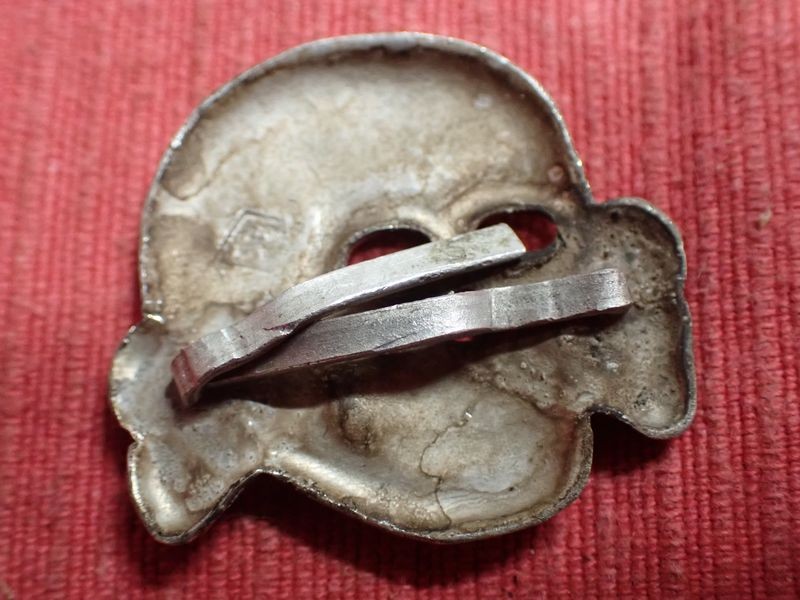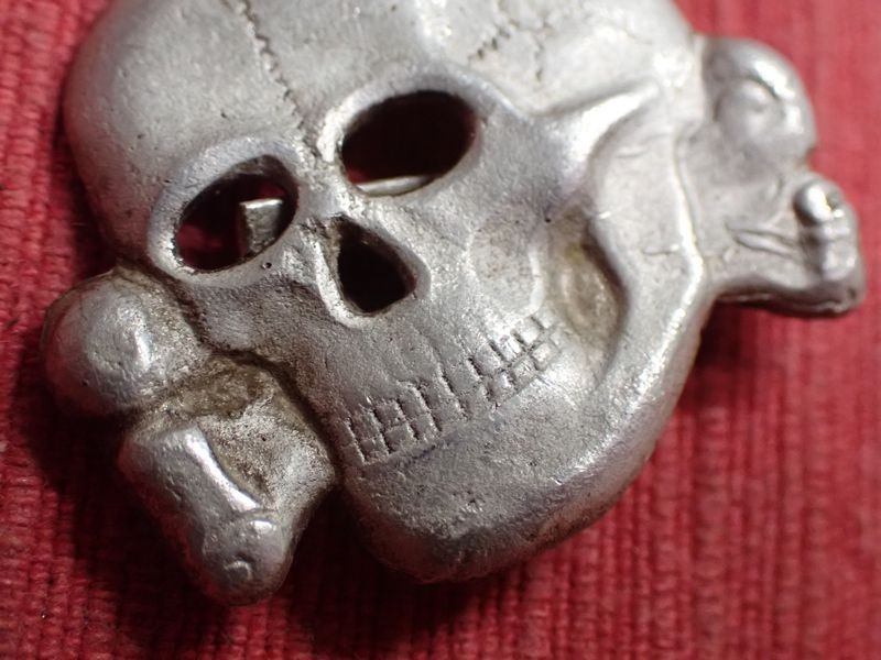 WW2 German SS visor cap death's head badgeDie-stamped aluminium totenkopf. Untouched with a light patina